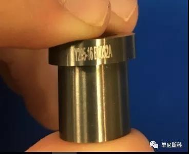 Dynisco提供各種不同直徑、長(zhǎng)度和入口角的毛細(xì)管口模。每一個(gè)口模都有一個(gè)特定的產(chǎn)品編號(hào),具體如下,其中為進(jìn)模角,為口模dimeter(單位:英寸)乘以103,為模具長(zhǎng)徑比。每個(gè)模具的零件號(hào)可以在模具的邊緣找到,見下圖。