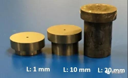 口模越長(zhǎng),由入口壓降引起的誤差越小。換句話說(shuō),毛細(xì)口模內(nèi)充分流動(dòng)的部分相對(duì)于入口區(qū)域隨著模長(zhǎng)增加而增大。原因很簡(jiǎn)單,即粘彈性聚合物熔體呈時(shí)間依賴性。由于聚合物熔體在口模內(nèi)停留的時(shí)間較長(zhǎng)(使用較長(zhǎng)的模具),材料鍛造口模入口處施加的彈性變形。建議使用長(zhǎng)模(L > 15mm)測(cè)量剪切粘度。短模(L<15mm);建議用于測(cè)量模具的彈性性能(如脹模率、壁滑速度等)。下圖顯示了三個(gè)不同長(zhǎng)度的模具。